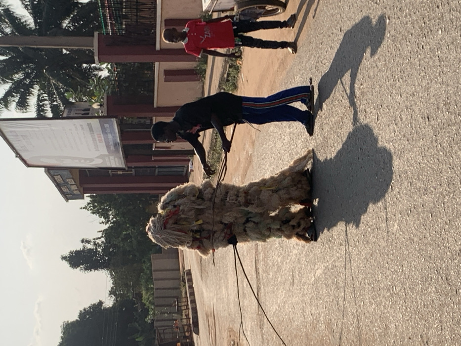 The scene is set on a paved road in Otuocha, Nigeria, illuminated by direct sunlight which casts long, distinct shadows