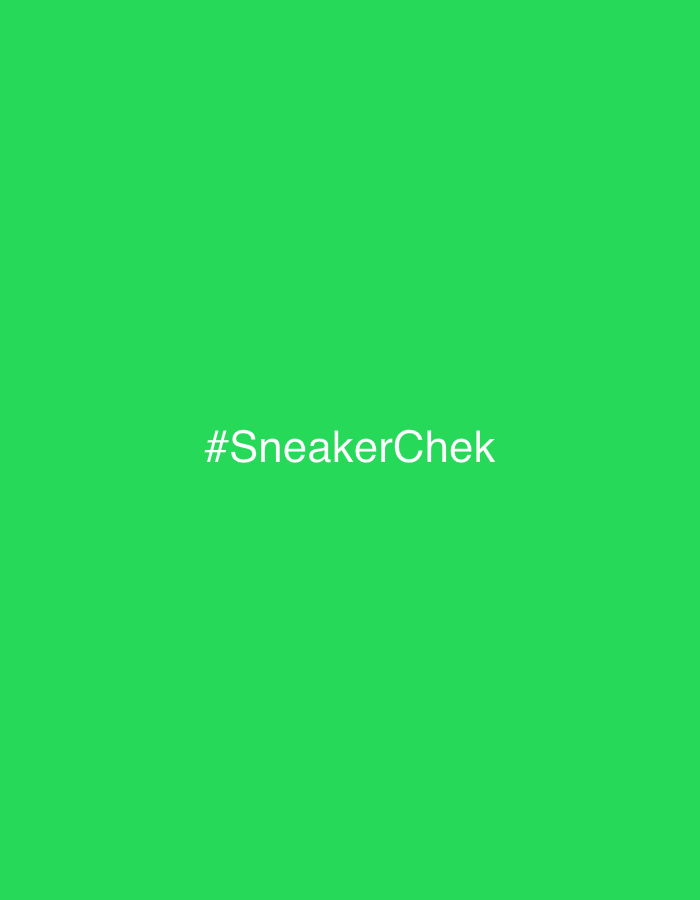 The image displays a uniform, solid green background. Centered horizontally on this background, the white text "#SneakerChek" is present. No people, subjects, objects, actions, or interactions are depicted. The environment is abstract, consisting solely of the color green. There are no visual elements within the image to indicate a specific location in the city of Zlatograd, Bulgaria, or any geographical context.