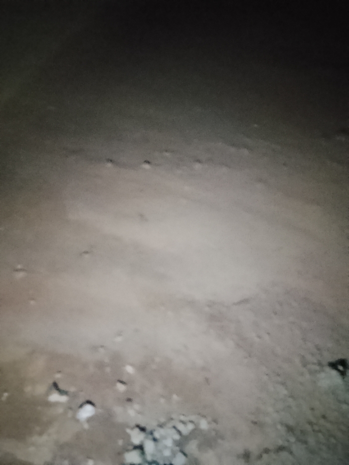 A dimly lit ground surface is captured in the image