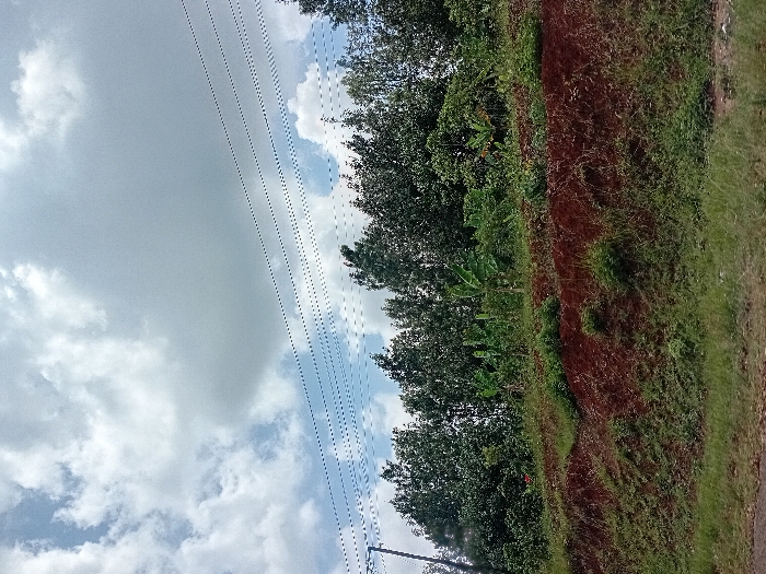 The image displays an outdoor scene in Mururi, Kenya, primarily comprising sky, utility infrastructure, and vegetation over a natural slope