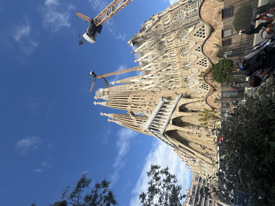 - "This image depicts the Sagrada Familia basilica located in Barcelona, Spain, viewed from a low angle looking upwards on a clear day with a blue sky and scattered white clouds" by FM-5V1Jf1, licensed under CC BY 4.0