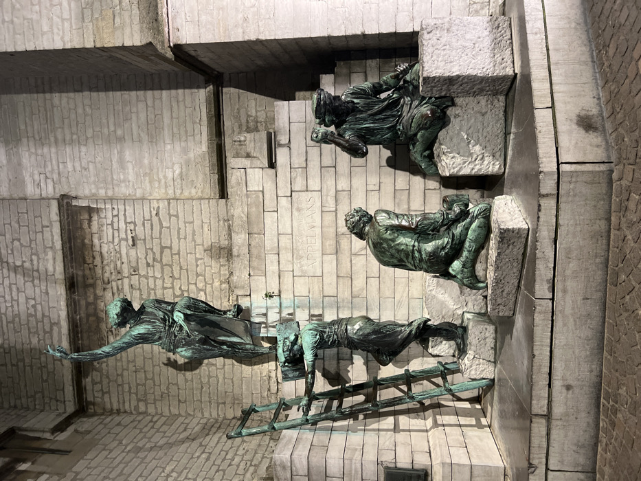 - "The image displays a patinated bronze sculptural monument, known as "De Bronzen Fontein" or "Appelmans Monument," situated at night against the light-colored stone wall of the Cathedral of Our Lady in Antwerp, Belgium" by FM-pCDYj1, licensed under CC BY 4.0