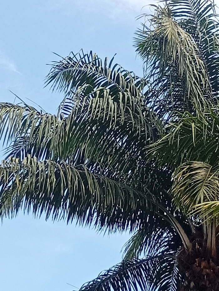 - "A low-angle shot depicts the upper portions of multiple palm trees against a largely clear, light blue sky" by FM-7veI73, licensed under CC BY 4.0