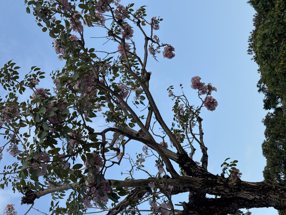 - "The image displays an upward-angled view of a blooming tree, identified as a Pink Trumpet Tree (Handroanthus impetiginosus or Tabebuia rosea), set against a clear, light blue sky in an urban green space within Hong Kong, China" by FM-0W7MV2, licensed under CC BY 4.0