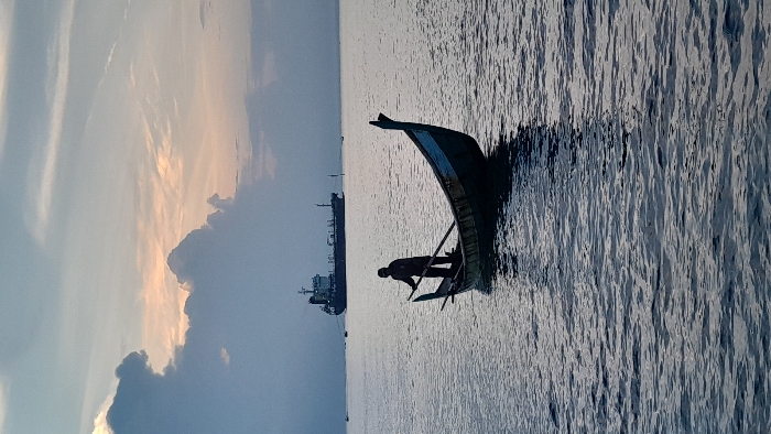 - "A solitary individual operates a traditional wooden boat on the waters of Lhokseumawe, Indonesia, at dusk or dawn" by FM-hcL462, licensed under CC BY 4.0