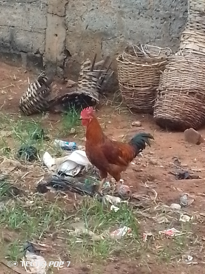 - "A rooster stands on dirt and scattered trash" by FM-afgOc2, licensed under CC BY 4.0