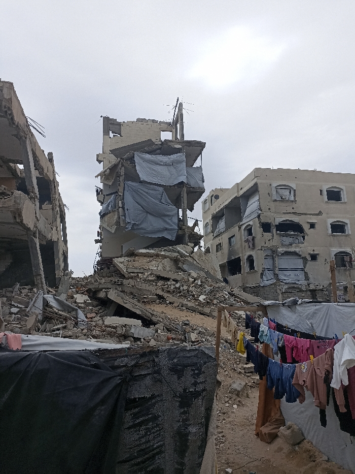 - "The image depicts a scene of extensive structural damage in Gaza City, Palestinian Territory, under an overcast sky" by FM-i04hm2, licensed under CC BY 4.0