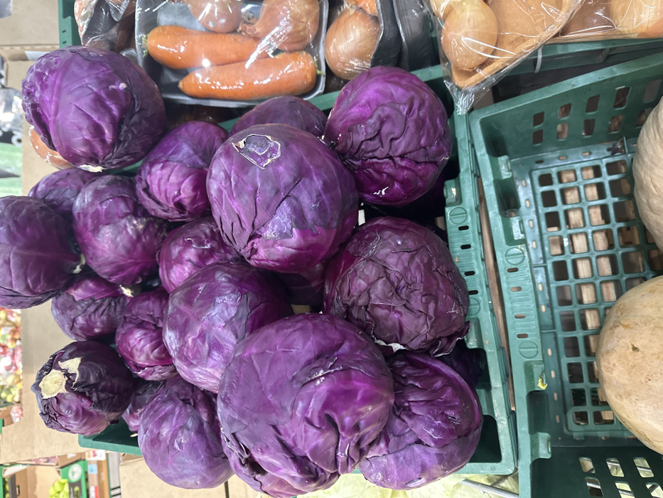 - "A heap of red cabbages fills the frame, showcasing their vibrant purple hue and textured leaves" by FM-oAXMt2, licensed under CC BY 4.0