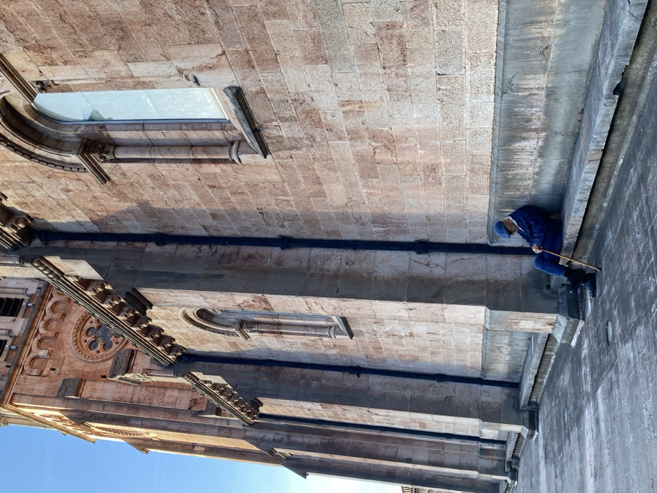 - "The image displays the exterior side of a large, multi-story building, identified as the Collegiate Church of Santa María de la Asunción in Cangas de Onís, Spain" by FM-whkRu1, licensed under CC BY 4.0