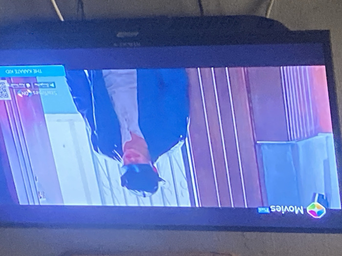 A photograph captures a television screen displaying a video