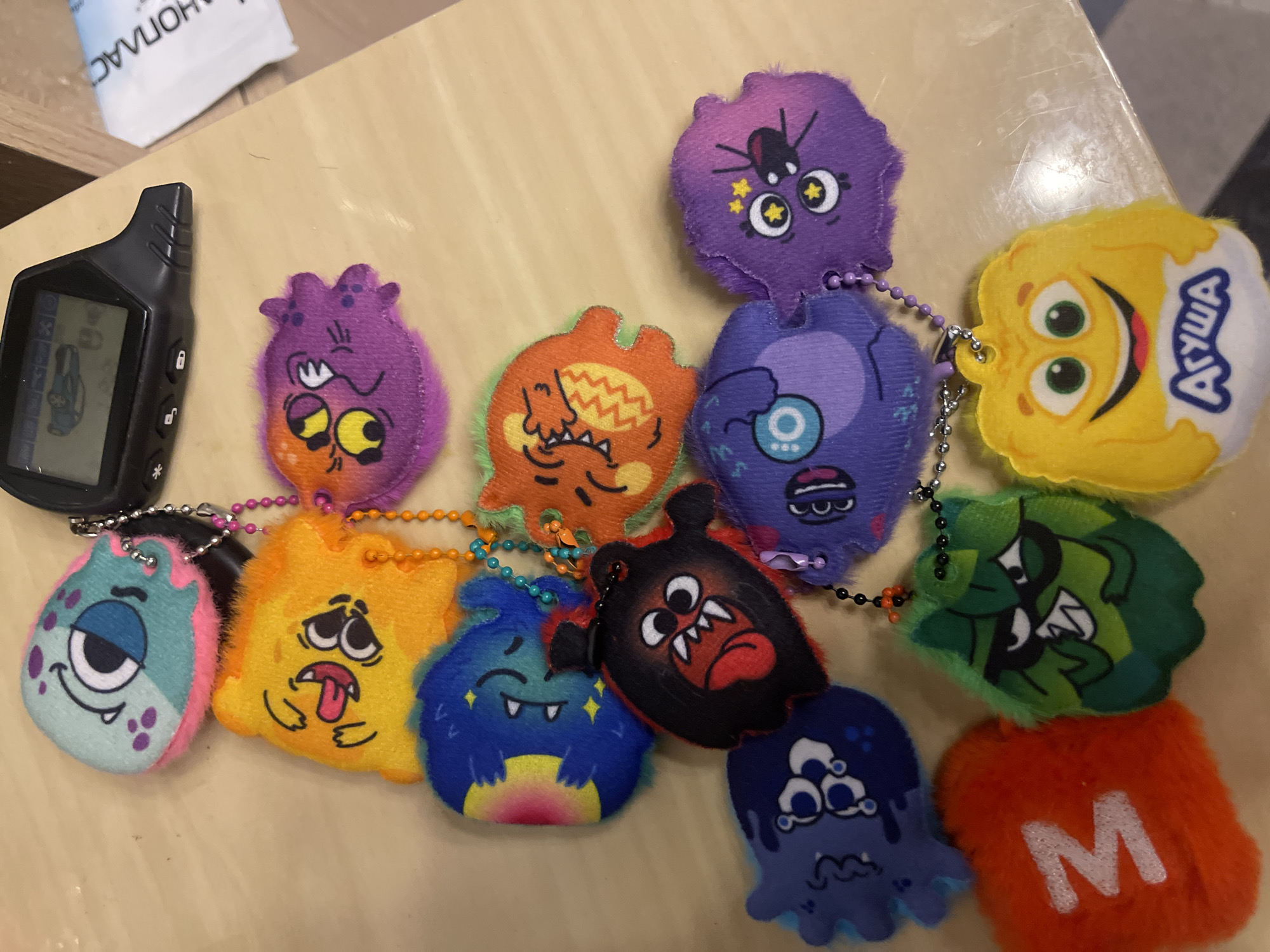 - "collection of plush monster keychains arranged on a tan surface" by FM-Q5HCl2, licensed under CC BY 4.0