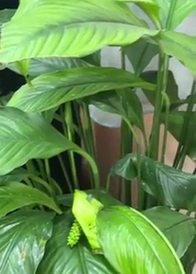 vibrant green peace lily plant, its leaves lush and healthy