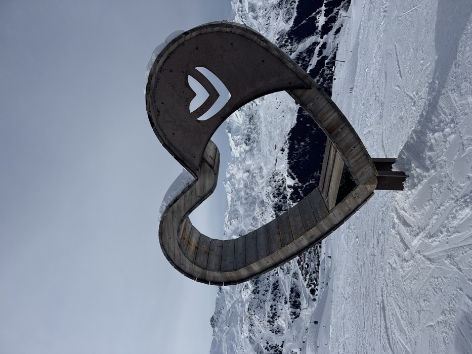 - "A large heart-shaped wooden and metal sculpture stands prominently in the foreground, positioned on a snow-covered mountain slope within the commune of Les Allues, France" by FM-B0rPs2, licensed under CC BY 4.0