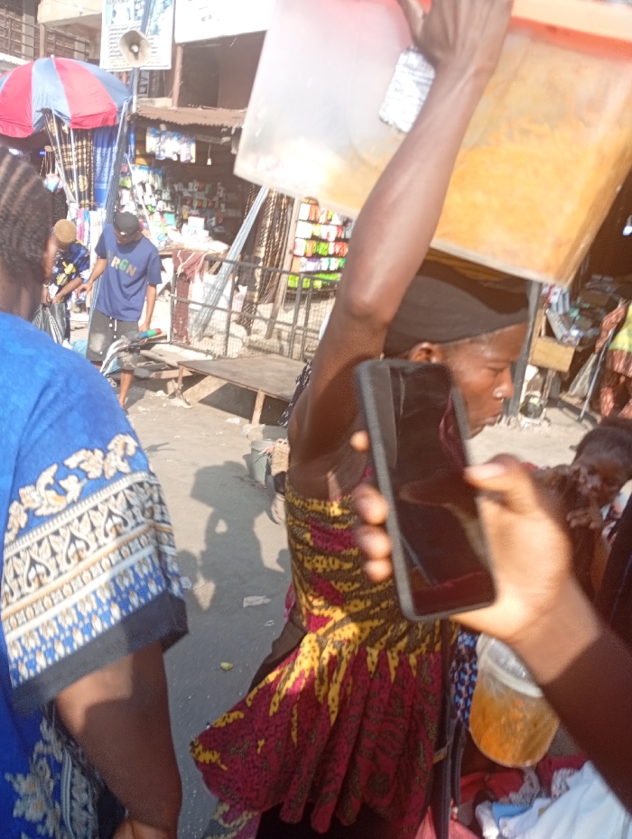 The image captures an active outdoor market scene in Ogbunike, Nigeria, under bright daylight