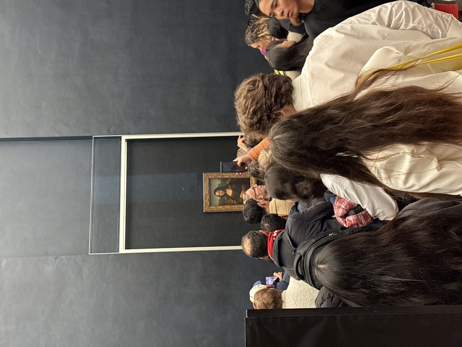 - "The image depicts a dense gathering of approximately two dozen individuals inside the Salle des États of the Louvre Museum in Paris, France" by FM-3pJMh1, licensed under CC BY 4.0