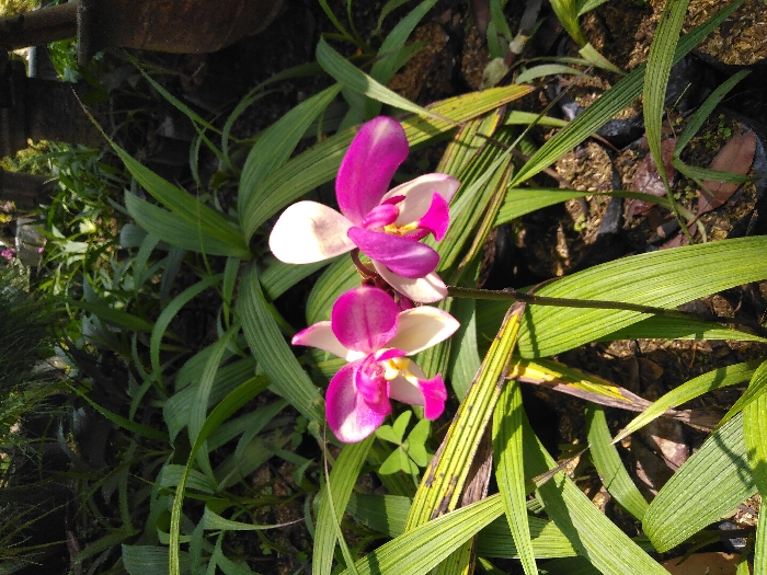- "A close-up photograph displays two Spathoglottis plicata (ground orchid) flowers positioned centrally amidst dense green foliage" by FM-AWsTN2, licensed under CC BY 4.0