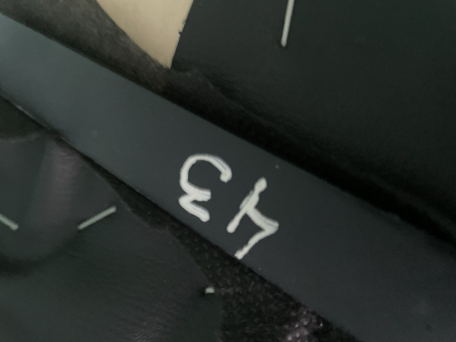 A close-up shot of a black surface with the number "13" written in white on it