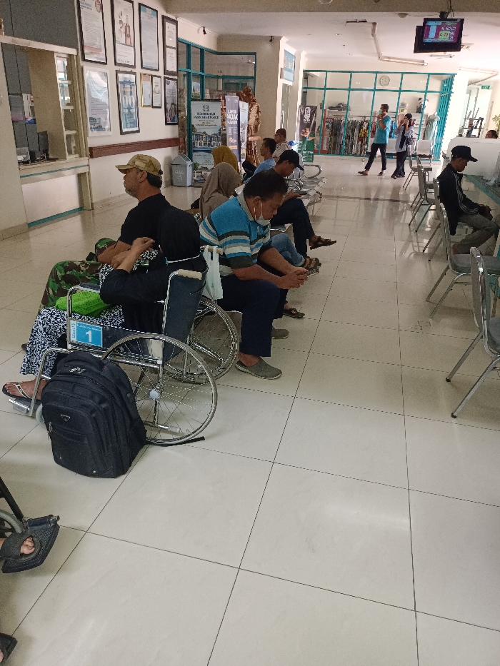 The image depicts an indoor waiting area, likely in a medical facility, in Margorejo, Indonesia