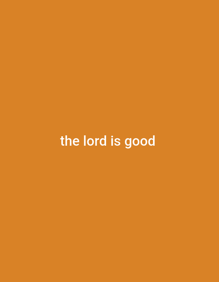 An orange background features the white text "the lord is good" centered horizontally and vertically