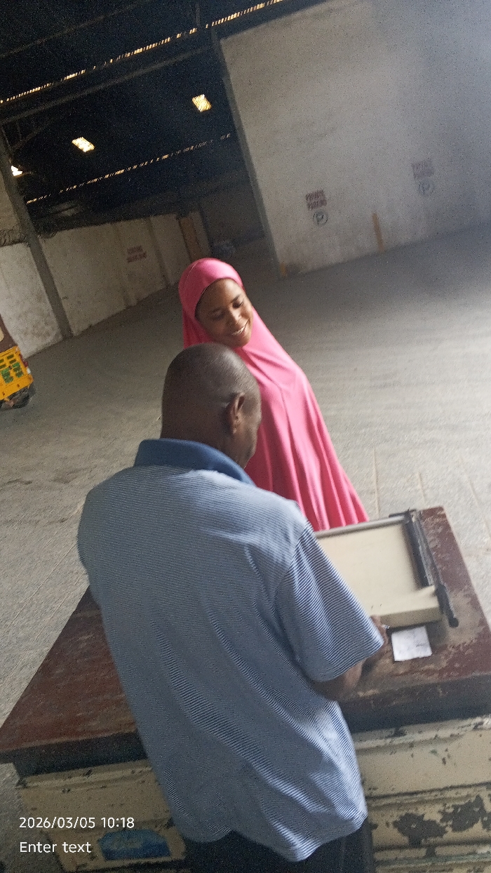 The scene is set indoors within a large, open-plan building, identified as being in Dakata, Nigeria