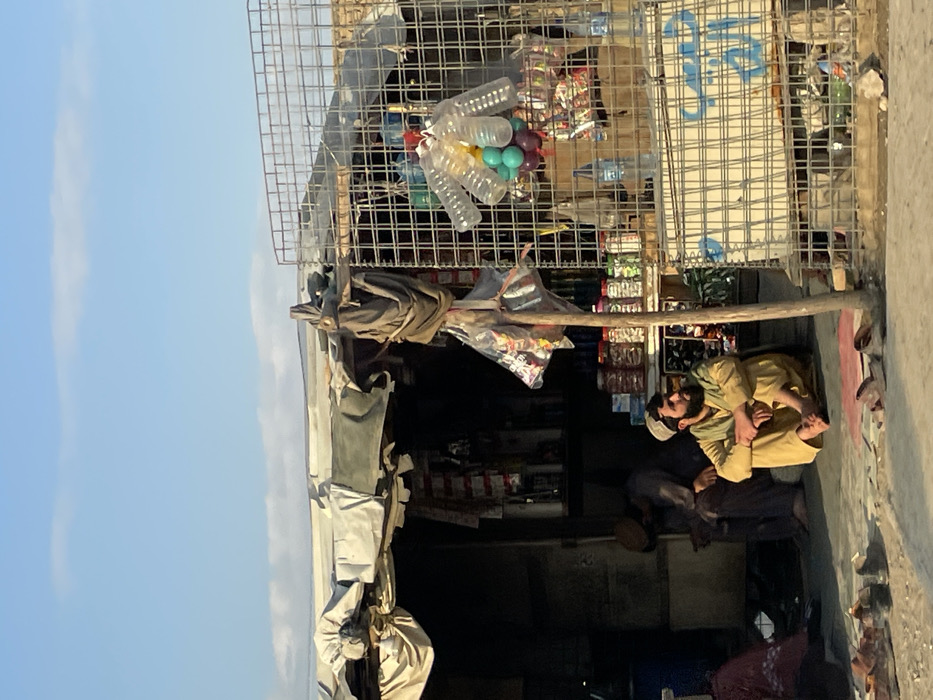 - "The scene depicts a roadside stall in Kandahar, Afghanistan, under a clear blue sky with minimal distant clouds" by FM-LYje72, licensed under CC BY 4.0