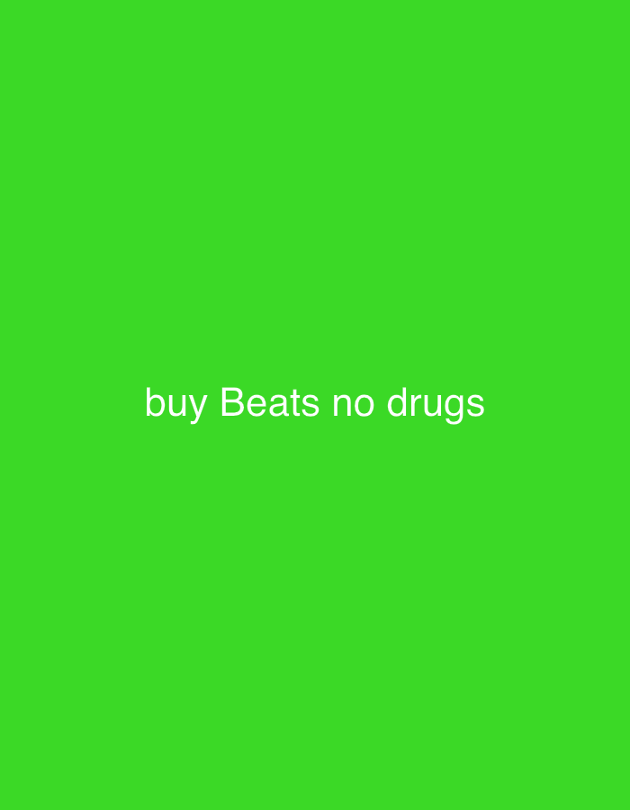 The image is a graphic display featuring a uniform, bright green background. White, sans-serif text is centrally positioned on this green field, reading: "buy Beats no drugs". There are no discernible people, subjects, objects, actions, interactions, or environmental features present in the image that would indicate a physical location in Kassel, Germany, or any other specific real-world setting. The content is purely text on a solid color background.