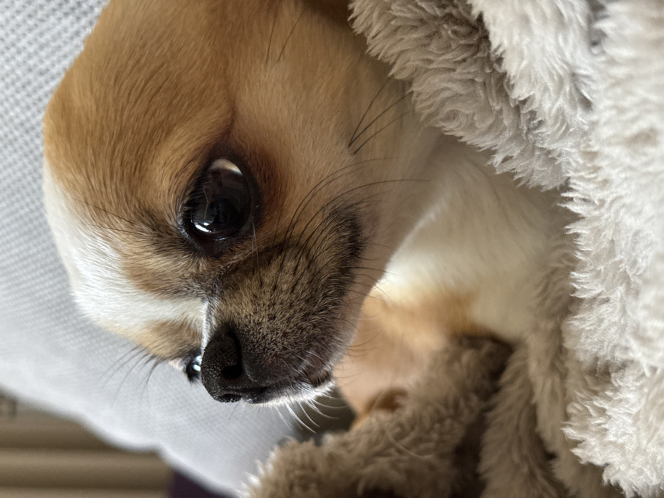 A close-up photograph captures the head and upper body of a short-haired Chihuahua dog