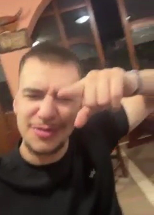 young man filming himself and his friends at what seems to be a restaurant or bar