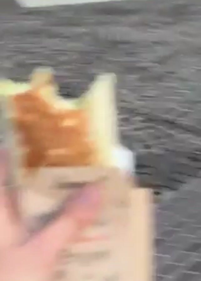 The video starts with a close-up of cobblestone pavement and a blurry, unrecognizable object in the lower left corner. The camera quickly pans up to reveal a building with archways and a large, white rectangular surface in front of it. The camera then pans rapidly to the right, revealing a fountain in the distance. The fountain has several statues and water spraying upwards. Finally, the camera gets very close to a person's face. The person has glasses, dark hair, and appears to be speaking or shouting. The shot is blurry and shaky.