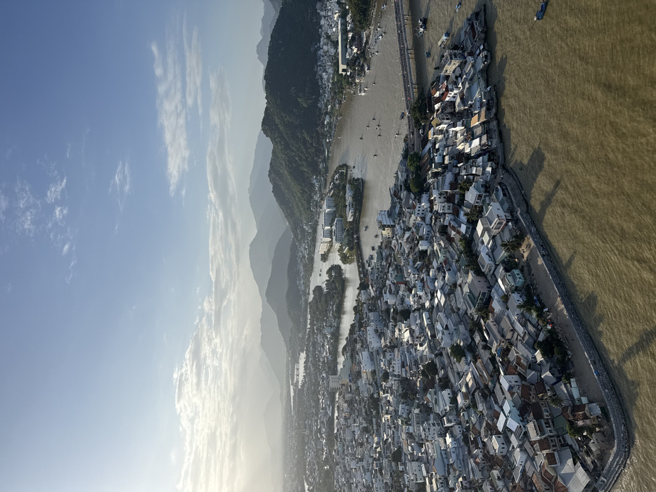 - "An elevated aerial photograph captures a significant portion of Nha Trang, Vietnam, with a focus on the lower section of the Cai River as it winds through the city" by FM-1dkO43, licensed under CC BY 4.0