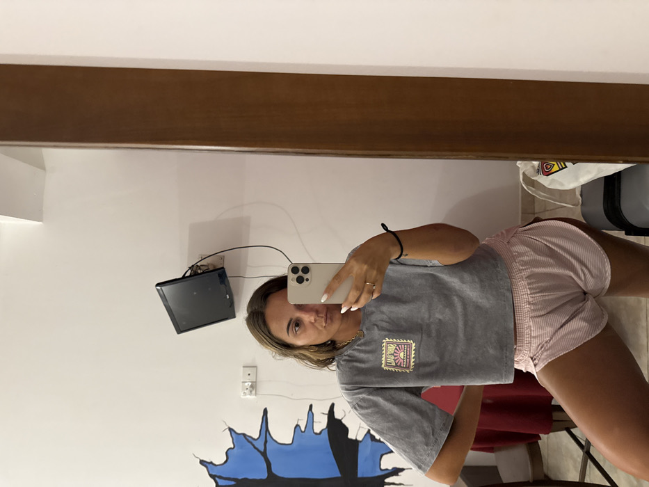 A young adult female is depicted taking a mirror selfie inside a room located in Thissamaharama, Sri Lanka