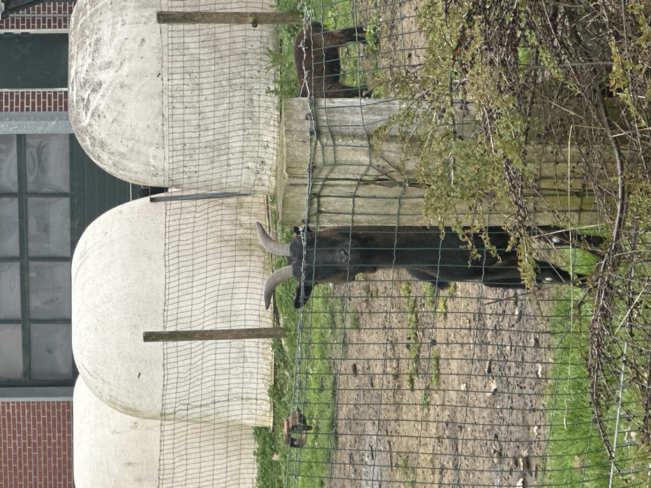 - "A black goat with distinct horns stands upright on its hind legs, positioned centrally behind a wire mesh fence and a concrete post" by FM-FcRXd2, licensed under CC BY 4.0