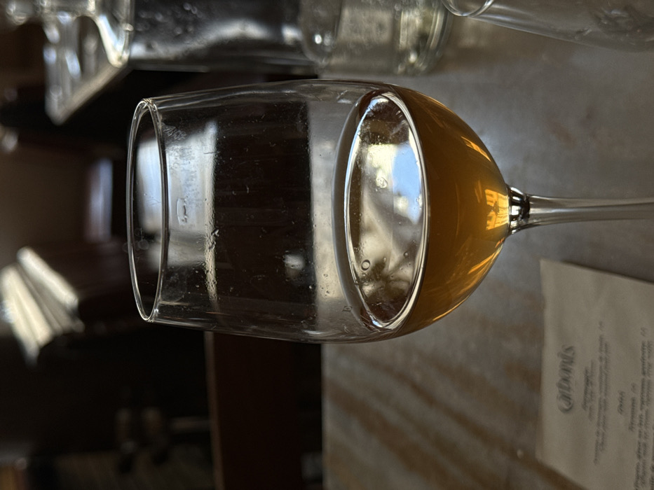 - "A stemmed wine glass, approximately one-third full of an amber-colored liquid, stands prominently in the foreground on a light-toned, possibly marble or wood-grained, table surface" by FM-nr0Go1, licensed under CC BY 4.0