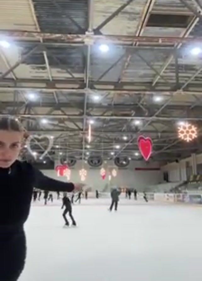 woman ice skating indoors