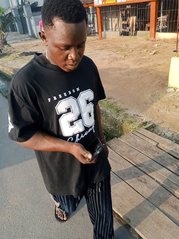 - "An African man with short hair looks down at a black phone in his hand" by FM-wRkyp1, licensed under CC BY 4.0