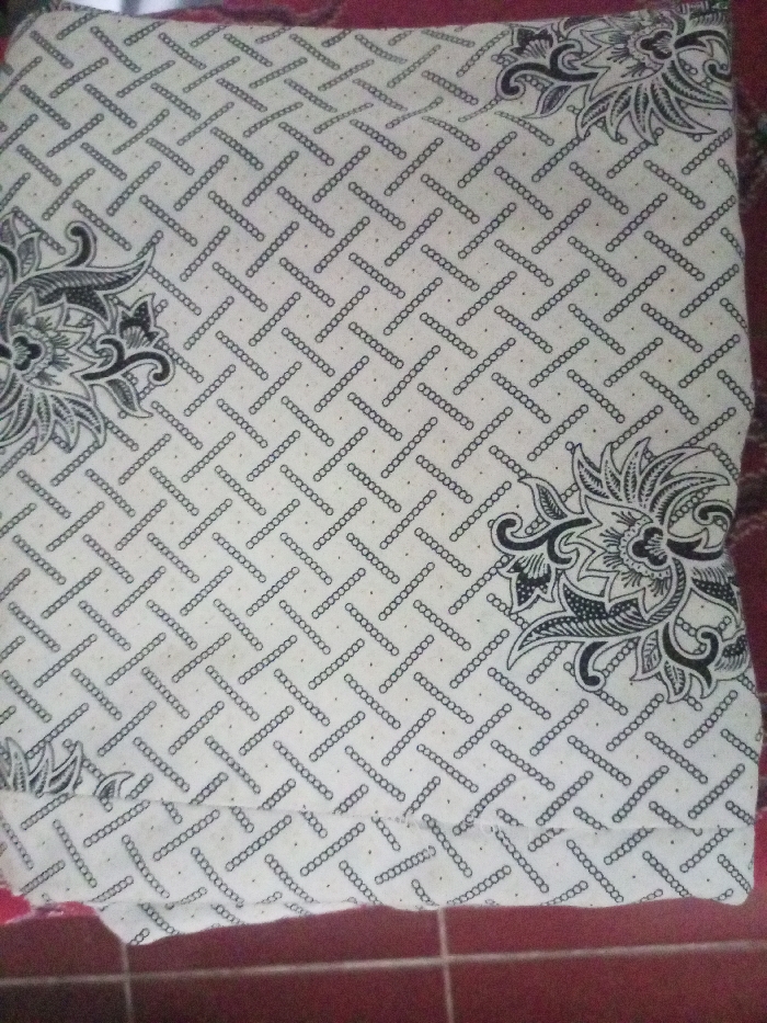 - "The scene displays a rectangular piece of patterned fabric laid flat on a reddish-brown tiled floor" by FM-0gFDA3, licensed under CC BY 4.0