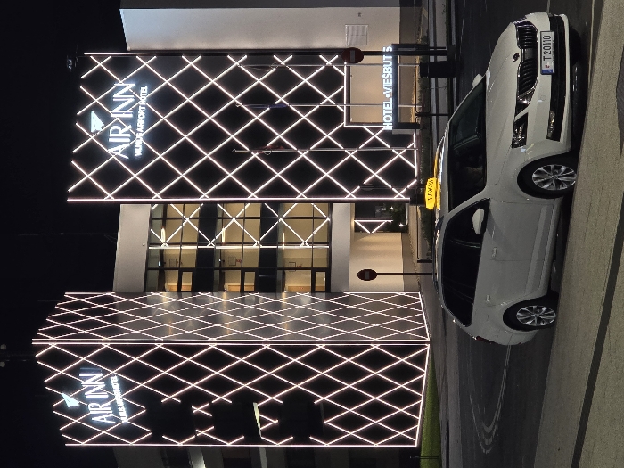 - "This nighttime image depicts the exterior of the AIR INN Vilnius Airport Hotel, located in Vilnius, Lithuania" by FM-VT8K93, licensed under CC BY 4.0
