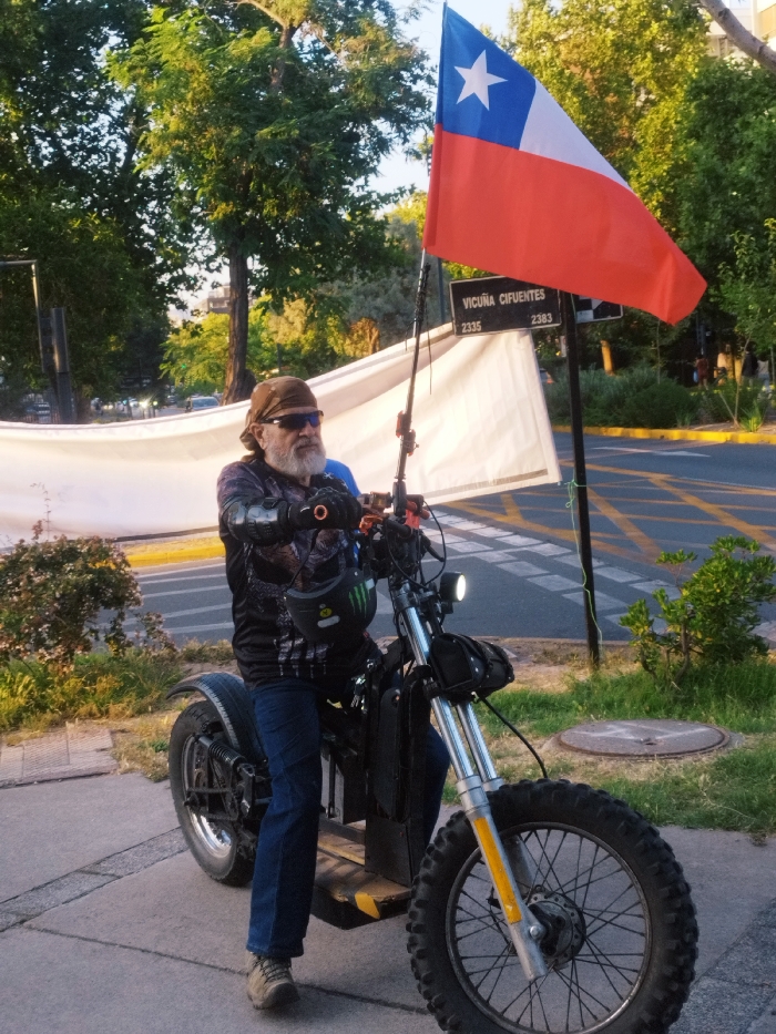 - "A man on an electric scooter displays the Chilean flag, its red, white, and blue colors waving proudly" by FM-ZqBmD2, licensed under CC BY 4.0