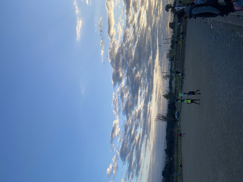 - "The image displays an outdoor, unpaved dirt sports field situated in Fez, Morocco, under a sky exhibiting a clear blue upper expanse and a lower band of altocumulus clouds illuminated by indirect sunlight, consistent with late afternoon or early evening conditions" by FM-ZyJNa2, licensed under CC BY 4.0