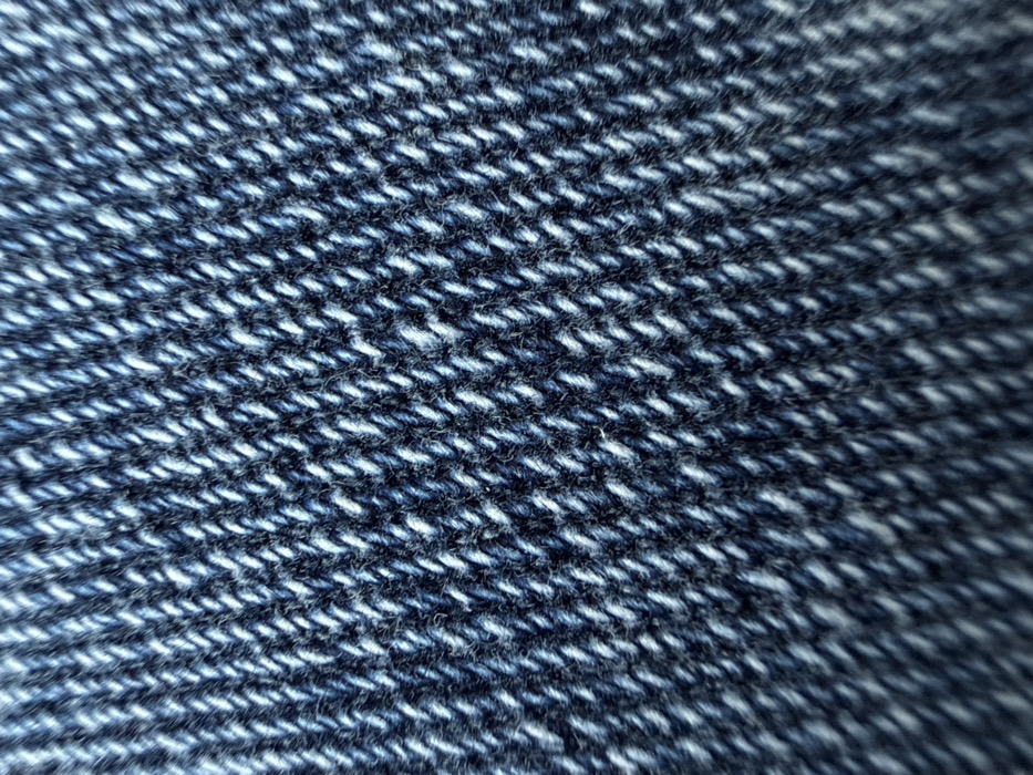 - "The image presents a magnified view of a blue denim textile, exhibiting a distinct right-hand twill weave pattern" by FM-PNepy2, licensed under CC BY 4.0