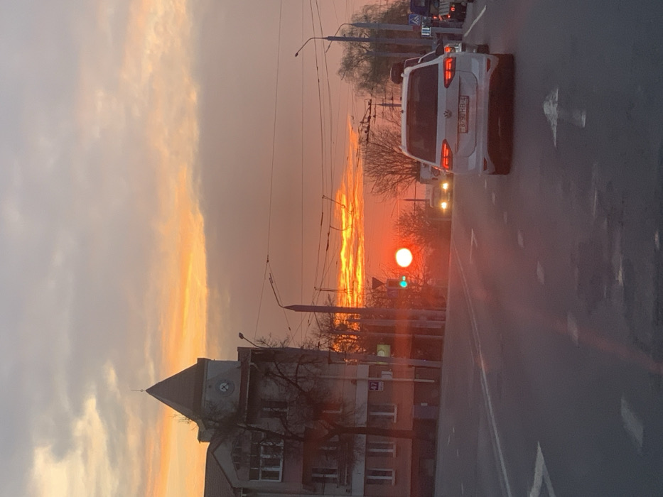- "The image displays a sunrise scene on Ulitsa Kirova in Hrodna, Belarus, looking east along the street" by FM-h4gri1, licensed under CC BY 4.0