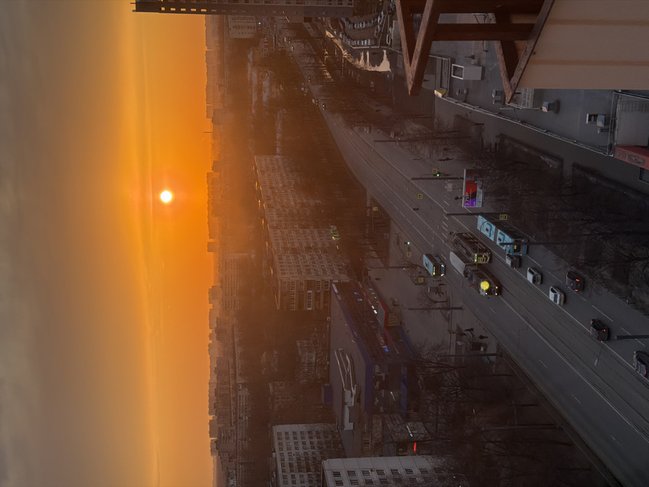 - "An aerial view captures a cityscape in Murino, Russia, at sunrise or sunset, characterized by a prominent, bright orange sun low in the upper-middle right sky, casting an orange hue across the hazy horizon and the entire scene" by FM-GgEhs1, licensed under CC BY 4.0
