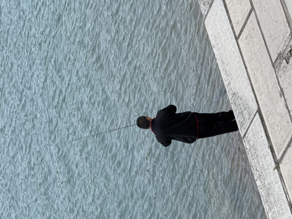 - "An overhead-angle image depicts a lone male individual engaged in fishing activity on the edge of a body of water in Zhangjiajie, China" by FM-7eaFY2, licensed under CC BY 4.0