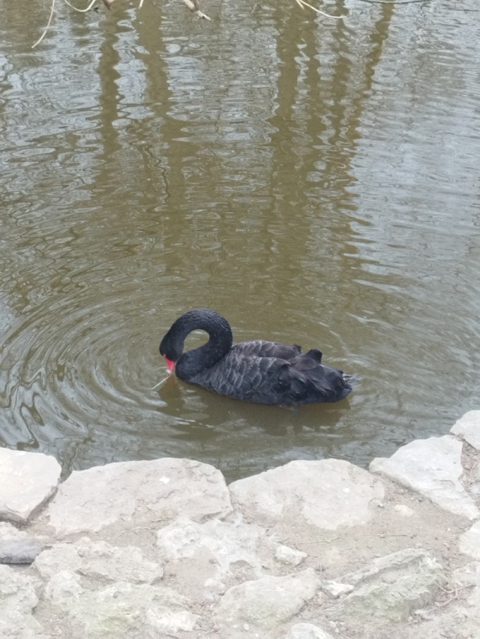 - "A solitary black swan (Cygnus atratus) is observed swimming in a murky, brownish-green body of water within Varna, Bulgaria" by FM-KEI273, licensed under CC BY 4.0