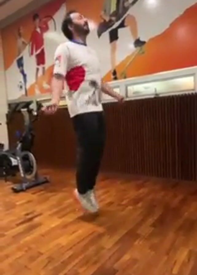 A man is jumping rope in a gym