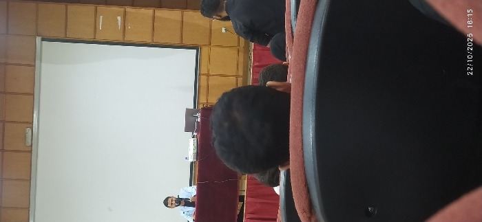 An image taken on 22/10/2025 at 18:15 depicts an indoor lecture or presentation in a facility within Al-Midan Municipality, Syria