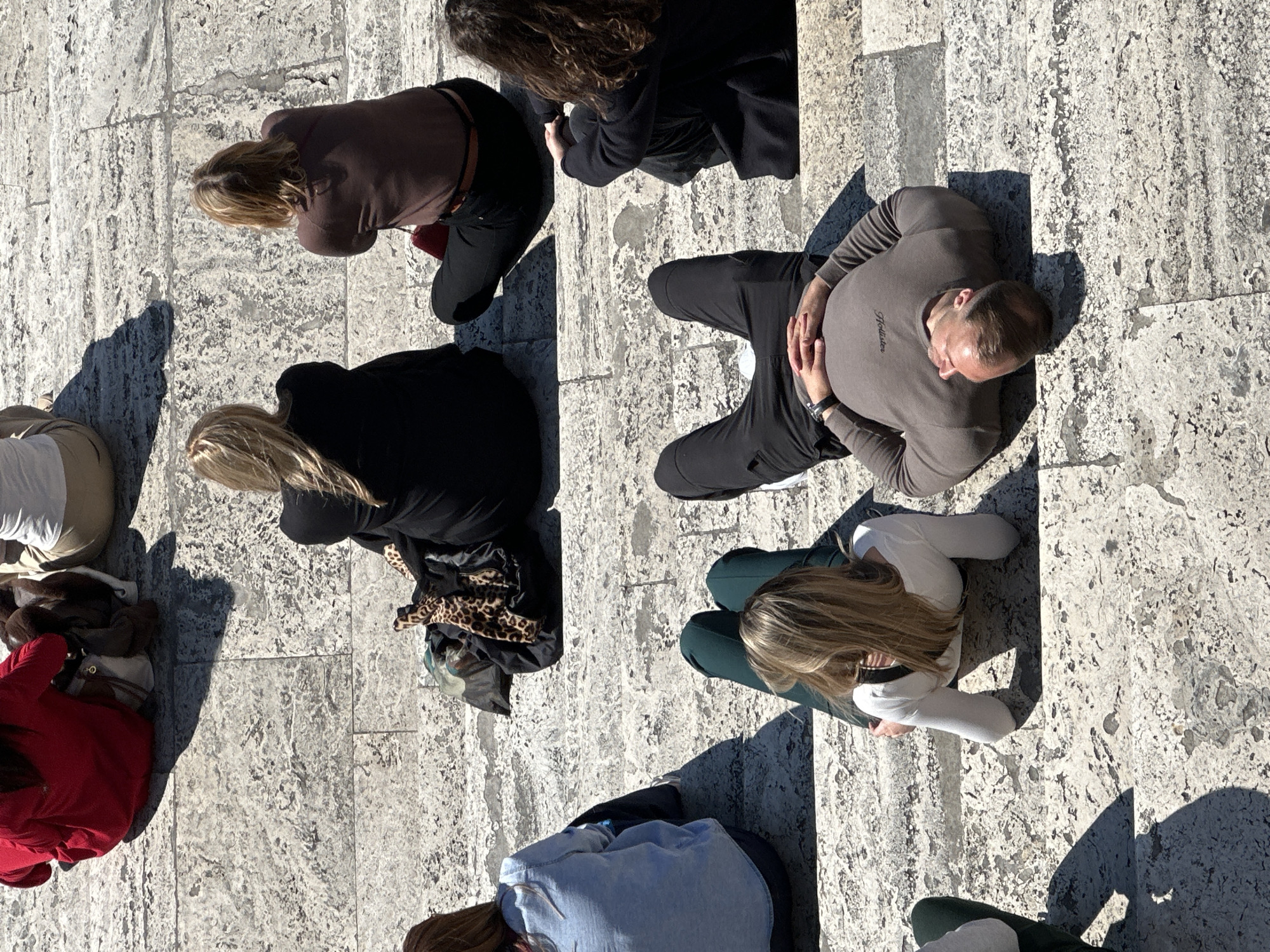 - "This image presents a high-angle view of multiple individuals resting on the worn, light-colored stone steps of the Spanish Steps (Scalinata di Trinità dei Monti) in Rome, Italy" by FM-Y0zeE2, licensed under CC BY 4.0