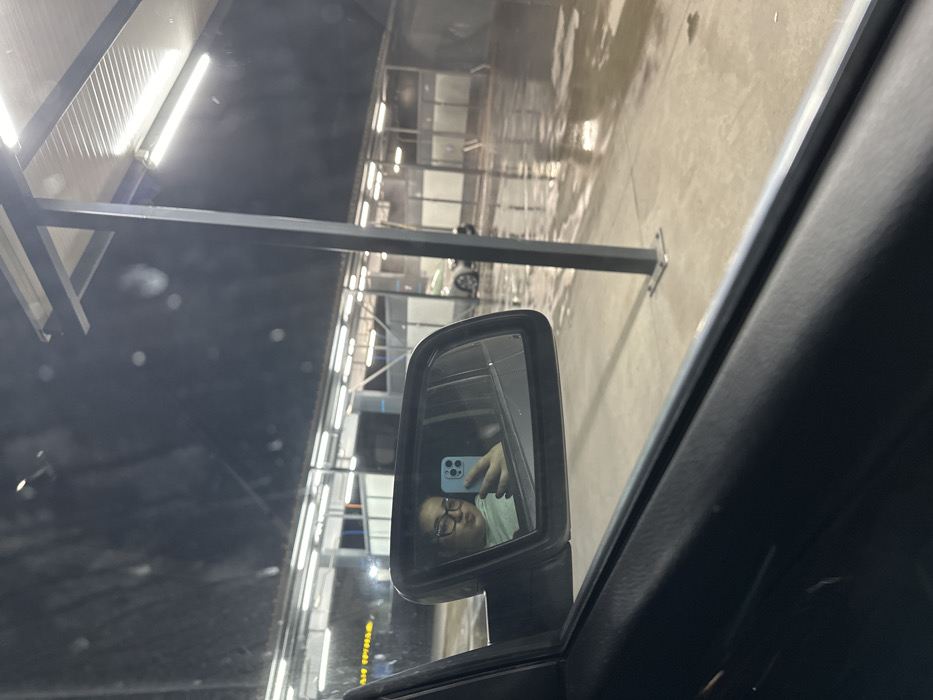- "The scene depicts a nighttime view from inside a dark-colored vehicle, looking out through the passenger side window and into the side mirror" by FM-ghh6b2, licensed under CC BY 4.0