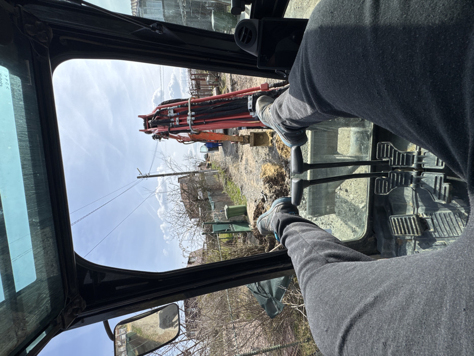 - "The image depicts a first-person view from inside the cab of an excavator, looking forward onto a dirt path in Konstantinovo, Bulgaria" by FM-s98en1, licensed under CC BY 4.0