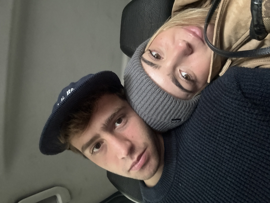 Two individuals are depicted in a close-up photograph taken inside a vehicle, located in Eindhoven, Netherlands